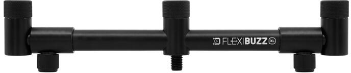 A karok alul laposra vannak vágva, így a rögzítőcsavar meghúzásakor a helyükön maradnak és nem fordulnak el. A felső menetek anyákkal vannak ellátva annak érdekében, hogy bármilyen típusú kapásjelzőt vagy botvillát pontosan egy síkba lehessen állítani a buzz bar-ral. A FlexiBUZZ erős alumíniumból készül, tartós fekete porbevonattal.